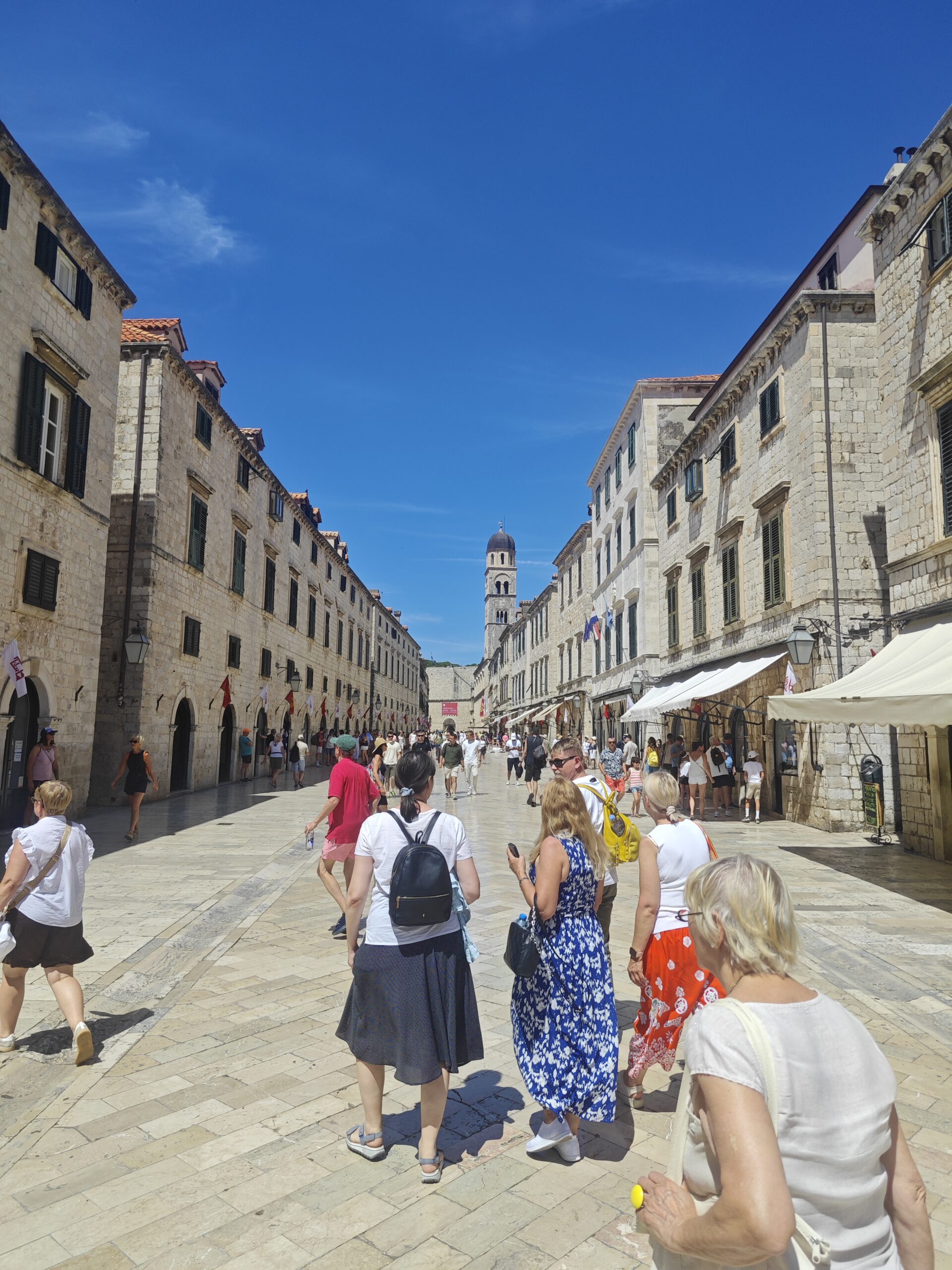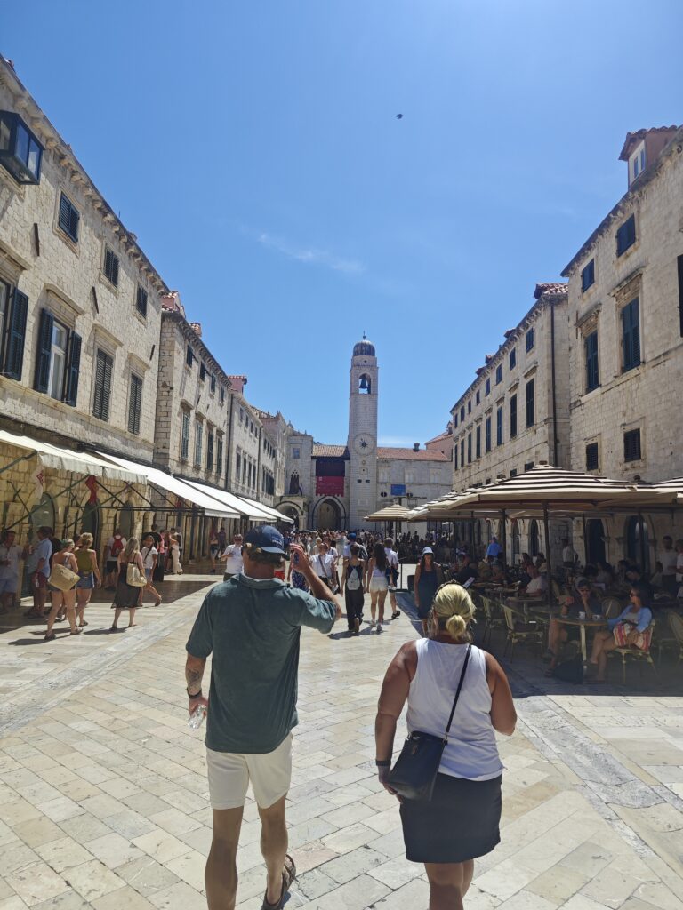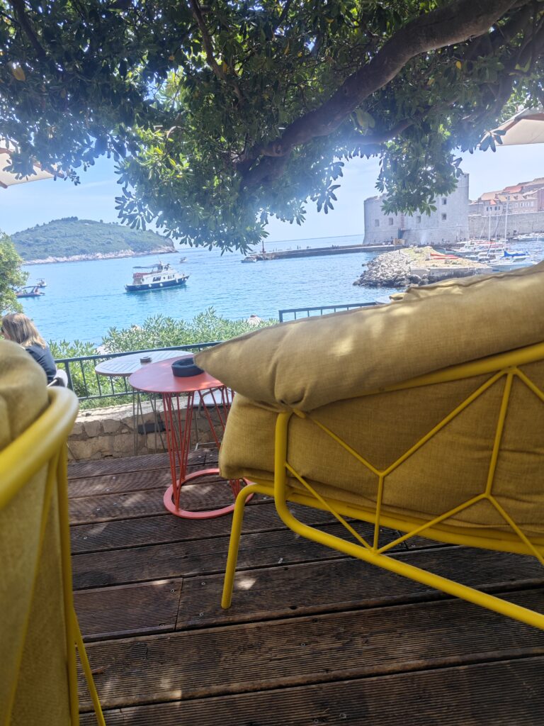 En öl i skyggan efter en varm rundtur I Dubrovnik.